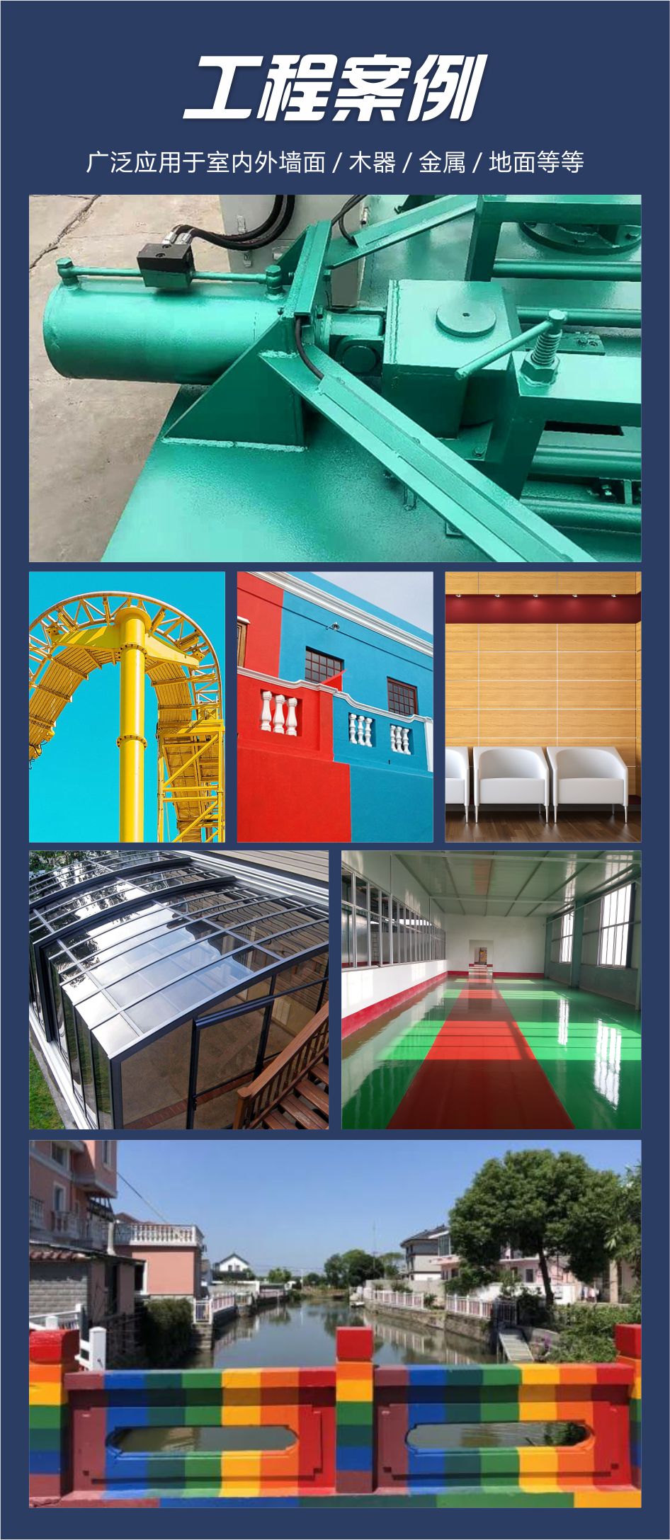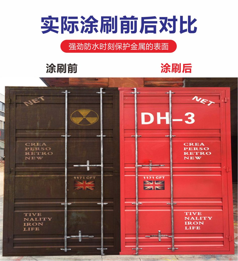 適用于金屬屋面及鋼結構、橋梁、木材、建筑表面、船舶、護欄、鐵門、鐵板等表面的防銹罩面保護和翻新。